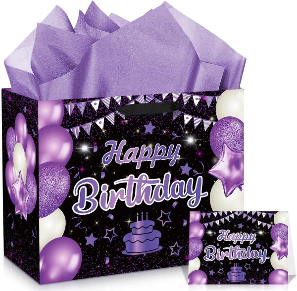 - 🎁Great Design:Large purple black birthday gift bag features a very shiny and realistic print, with a purple black happy birthday blessing card and 3pcs purple tissue paper which make the birthday gifts look more full of birthday party atmosphere